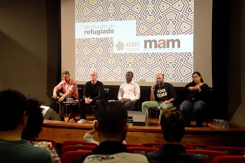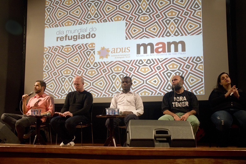 Para celebrar o Dia Mundial do Refugiado, o MAM em parceria com o Adus | Instituto de Reintegração do Refugiado – Brasil, promoveu um Bate-papo sobre Fronteiras e Culturas com André Naddeo, jornalista e voluntário independente que atua na crise dos refugiados na Grécia, Cedric Mataawè Binoa, togolês, formado em sociologia da educação e em línguas estrangeiras, Marcelo Haydu, diretor do ADUS e mediação Lourival Cuquinha, artista visual que trabalha com várias mídias, autor da obra Transição de fase na qual trabalhou com a questão do refúgio e imigração em SP. E a banda Os Escolhidos, composta por oito integrantes da República Democrática do Congo e da Angola se apresentou no fim do evento. Confira como foi!