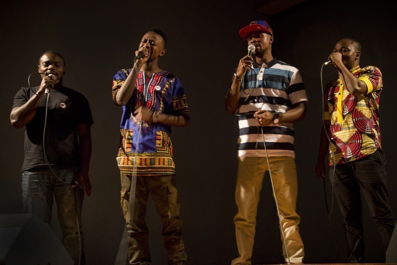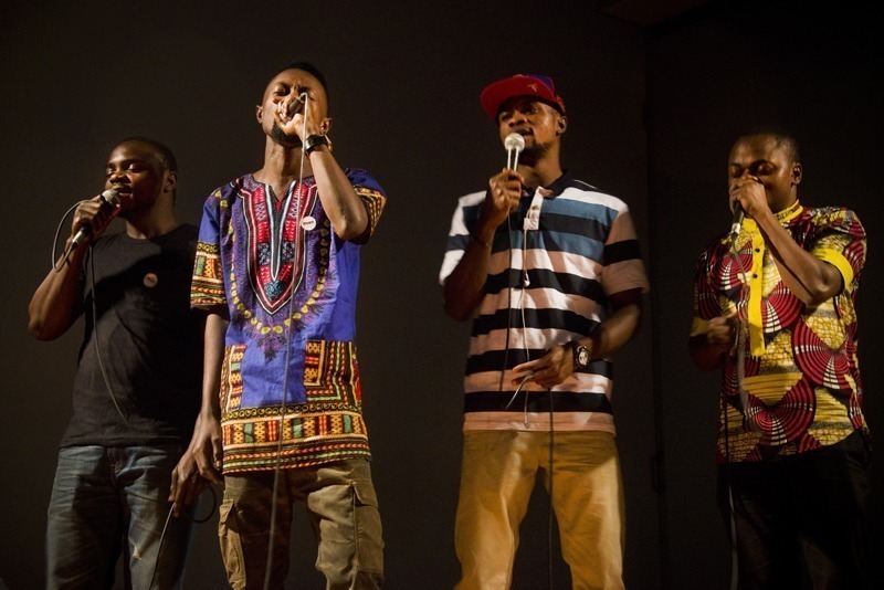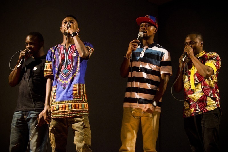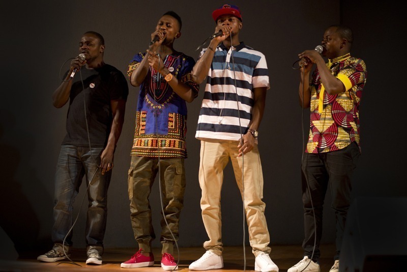 Apresentação da banda Os Escolhidos, composta por oito integrantes da República Democrática do Congo e da Angola.
